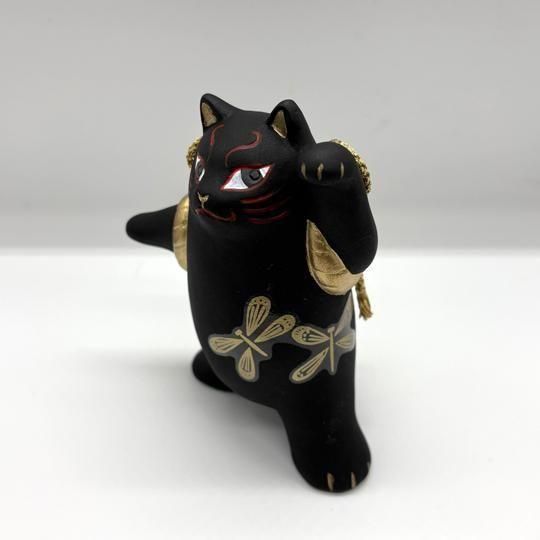 歌舞伎 ねこ トンボ 黒 置物 猫 日本製 瀬戸焼